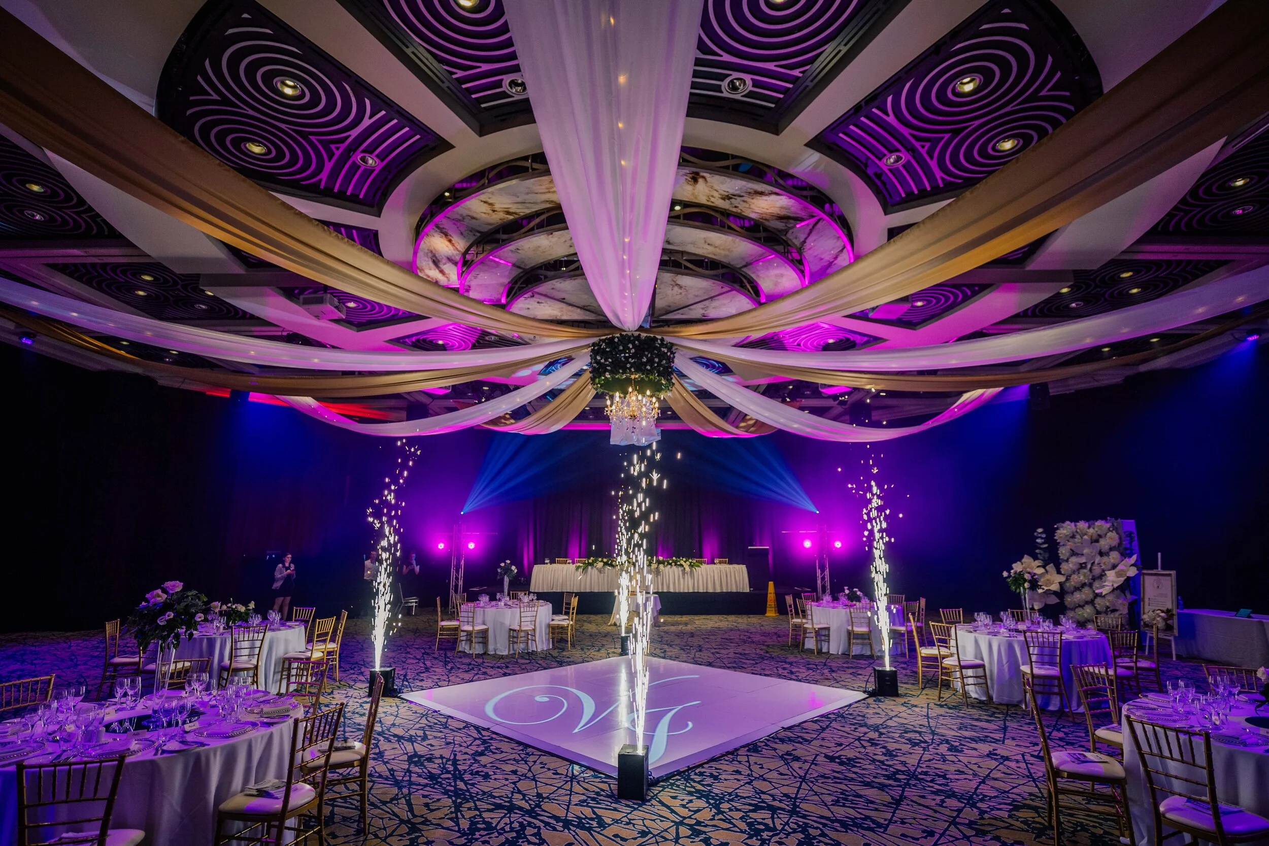Our one of a kind LED dance floor is sure to wow your guests! With a multitude of programmes to either keep it all white, or fill the room with colour, it’s perfect to step your special night up a notch!